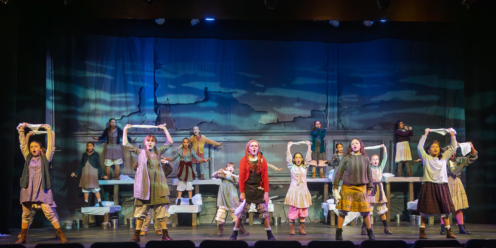 Also featured are orphans Ty Bedesem, Lorena Bueno Looney (Duffy), Angela Casale, Juliette Delessio, Claire Dryzga, Sadie Elliott, Naomi Gooden (Tessie), Grace Greeley (Kate), Alexa Gutierrez, Rosie Maimon, Rosalie Marin (July), Jocelyn Mulcahy, Teresa Bao Nhi Nguyen, Maddie Pettola, Giuliana Pipito, Aurora Smith (Molly), Mia Smith, Riley Smith (Pepper), and Ada Wittenzellner.