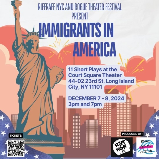 Long Island City, NY – RiffRaff NYC, a theater company dedicated to amplifying immigrant voices, is partnering with Rogue Theater Festival to present “Immigrants in America,” a powerful showcase featuring eleven short plays that highlight the diverse experiences of immigrants in the United States. This two-day festival will take place on December 7th and 8th, with showtimes at 3 PM and 7 PM, at the Court Square Theater in Long Island City.